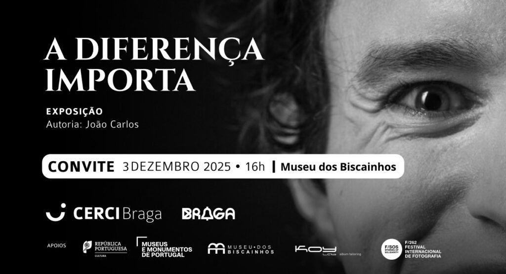 “A Difference Matters” is an exhibition developed by CERCI Braga, photographed by João Carlos, and co-produced with F/SOS – Stories of Solidarity for Braga Capital da Cultura 2025. The project gives visibility to individuals whose stories are often overlooked, celebrating their dignity, presence and unique identities.
